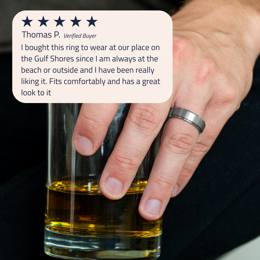 Built for the man who is always on the move, the Gentleman is ready to handle everything from your hardest gym days to long weekends away, and it’s the ring you reach for when your wedding-day band should probably stay home. Clean, comfortable, and built for real-world wear, it never feels like a cheap backup—and it’s protected for life with our lifetime warranty and free exchanges.