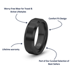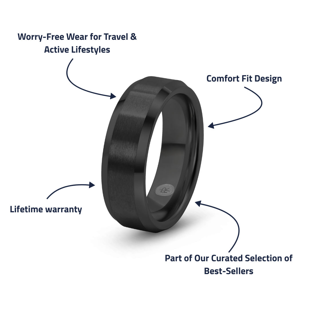 Most travel rings feel like a downgrade. The Armory doesn’t. With its brushed finish and subtle polished edges, it looks sharp with everything from a t-shirt to a blazer, and it’s tough enough for travel, long days, and weekends away. It takes the hits so your wedding-day band doesn’t have to—backed by our lifetime warranty so you can wear it hard without worrying.