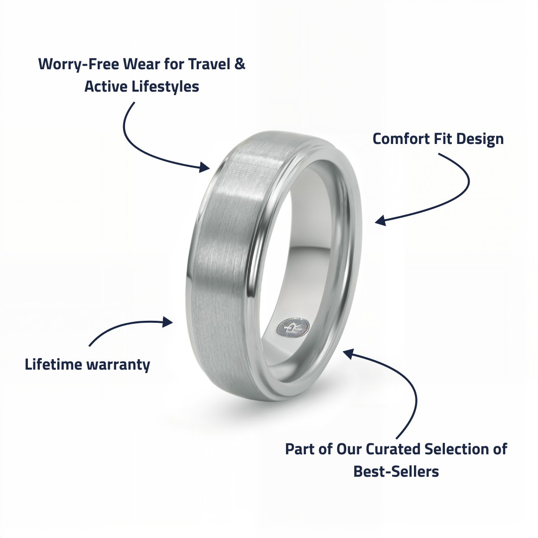 Built for the man who is always on the move, the Gentleman is ready to handle everything from your hardest gym days to long weekends away, and it’s the ring you reach for when your wedding-day band should probably stay home. Clean, comfortable, and built for real-world wear, it never feels like a cheap backup—and it’s protected for life with our lifetime warranty and free exchanges.