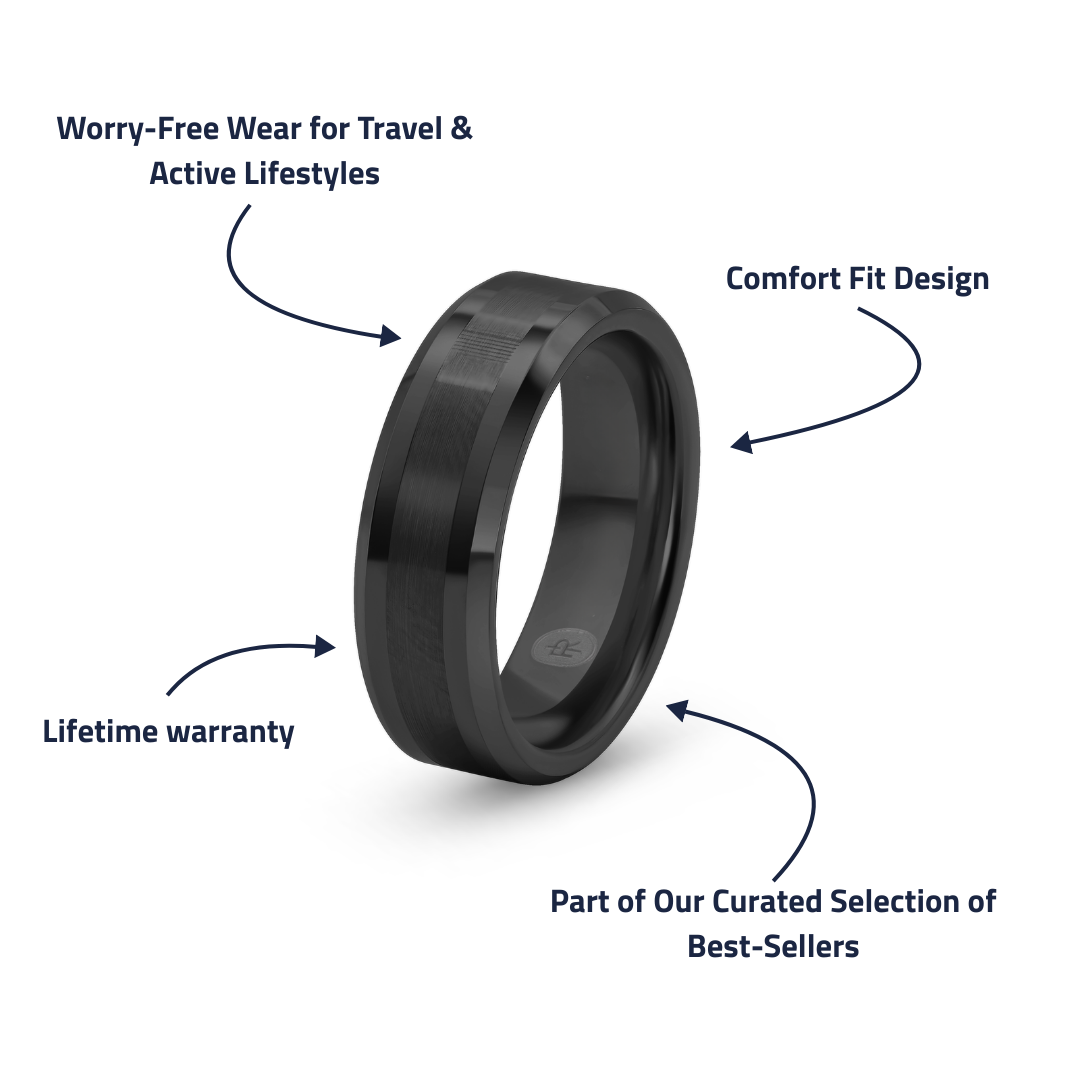 Our wedding bands are crafted from premium tungsten carbide, one of the hardest and most durable metals available. They are scratch-resistant, hypoallergenic, and designed to stand the test of time—perfect for the modern man.