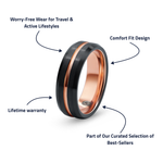 The Blaze is the ring you reach for when you want your style to have a little edge. The minimalist dark profile with a subtle flash inside keeps it masculine and modern, not flashy or overdone. Designed for workouts, weekends, and trips where you’d rather not risk your wedding-day ring, it’s built to last and protected for life with our lifetime warranty.
